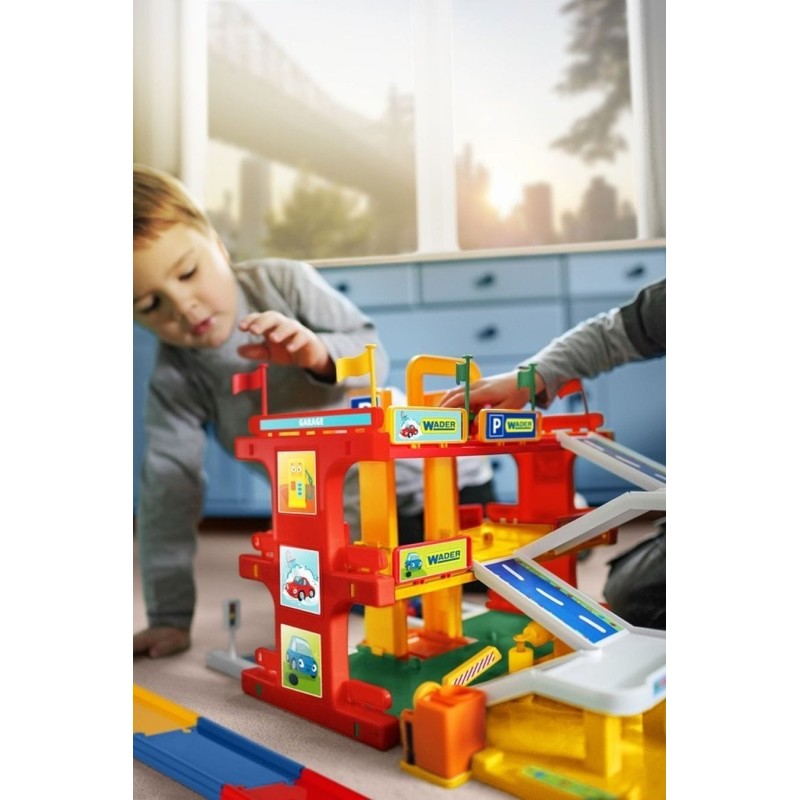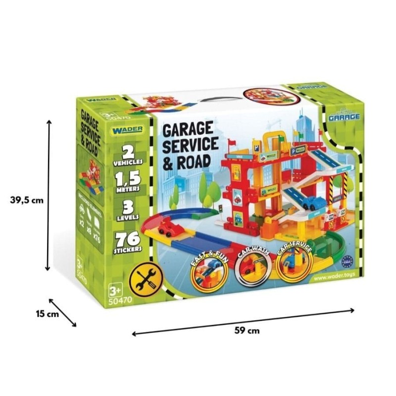 Этот современный комплект, точно воспроизводящий настоящие автомобильные гаражи, был оснащен лифтом, позволяющим транспортировать автомобили на один из трех уровней, пандусом, функциональной автомойкой, заправочной станцией и местом обслуживания. В комплект также входят два автомобиля и дорожная система длиной 1,5 метра. Его легкий, красочный дизайн очень прост в сборке, что позволяет быстро начать веселье.