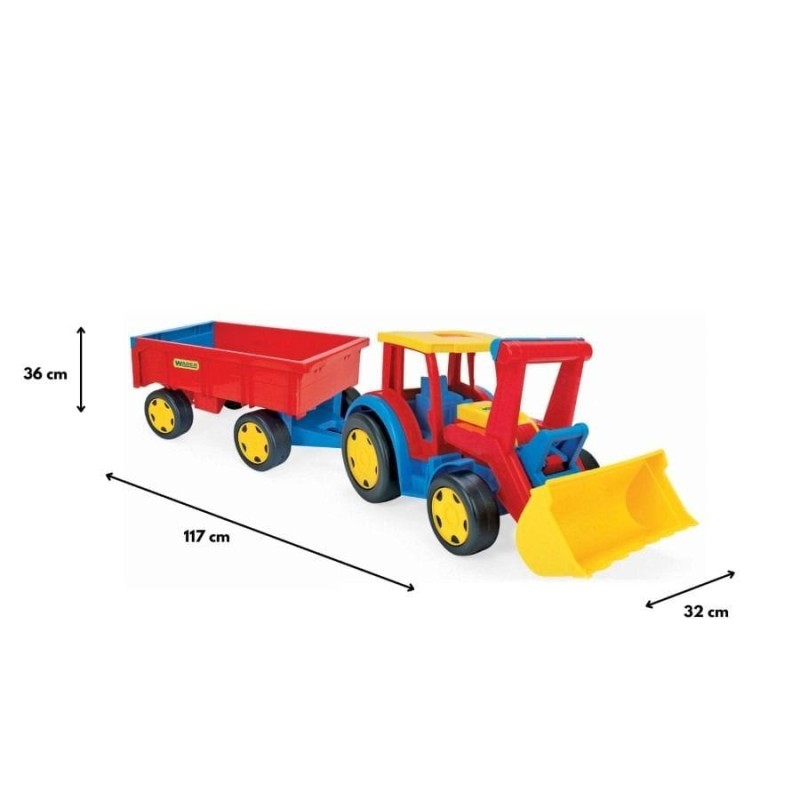 • большой, массивный трактор погрузчик (грузоподъемность до 100 кг) с прицепом (грузоподъемность до 60 кг) - длина транспортных средств всего 117 см