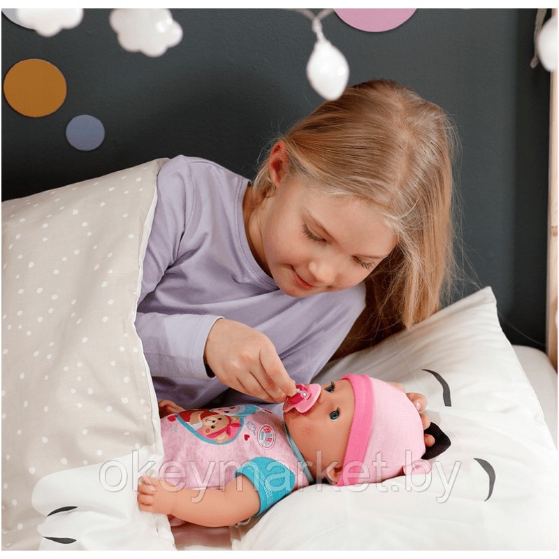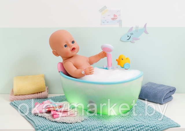 Иногда, когда Эмме становится грустно, она начинает плакать.Куколке нужно утешение! Вставьте ей в рот волшебную соску и поверните, и девочка закроет глаза. Ааааа! Она выглядит спящей! Наверное, после того, как она вздремнет, ей захочется искупаться! Малышка любит плескаться в ванне.