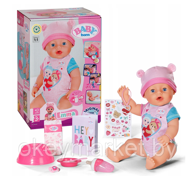 Кукла Baby Born Emma-интерактивная малышка, которая любит веселье и приключения. Десять функций, имитирующих настоящее поведение ребенка, побудят малышей люби заботиться о куколке.