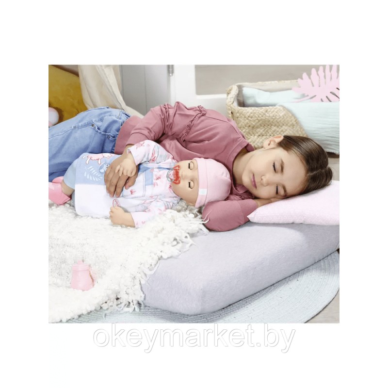 Познакомьтесь с куклой Беби Анабель 43 см! На улице еще светло и Анабель никак не хочет спать? Просто укачай куклу и положи в горизонтальное положение, её глазки закроются и она начнет засыпать.