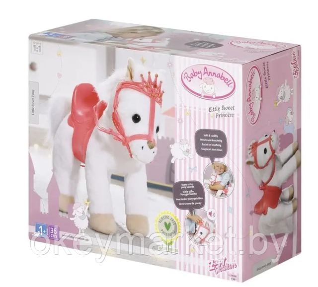 У белого пони королевская осанка и сверкающая корона, а из-за нее выглядывают веселые настороженные ушки. Если нажать на правое ухо, пони начнет ржать или фыркать. Если нажать на левое ухо, можно услышать цокот копыт. Маленькая Аннабель по уши влюблена в своего питомца и часто целует пони в ноздри. В ответ пони издает звуки поцелуев. Маленькая принцесса удобно сидит в седле во время прогулки, а держатель для куклы придает ей необходимую устойчивость.